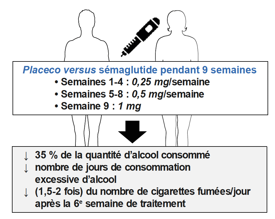 1. Hendershot CS, Bremmer MP, Paladino MB et al. Once-weekly semaglutide in adults with alcohol use disorder. JAMA Psychiatry 2025 ; 82 : 395‑405.