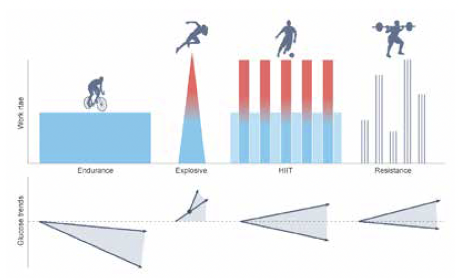 Les variations de la glycémie dépendent fortement du type d’activité physique (AP).