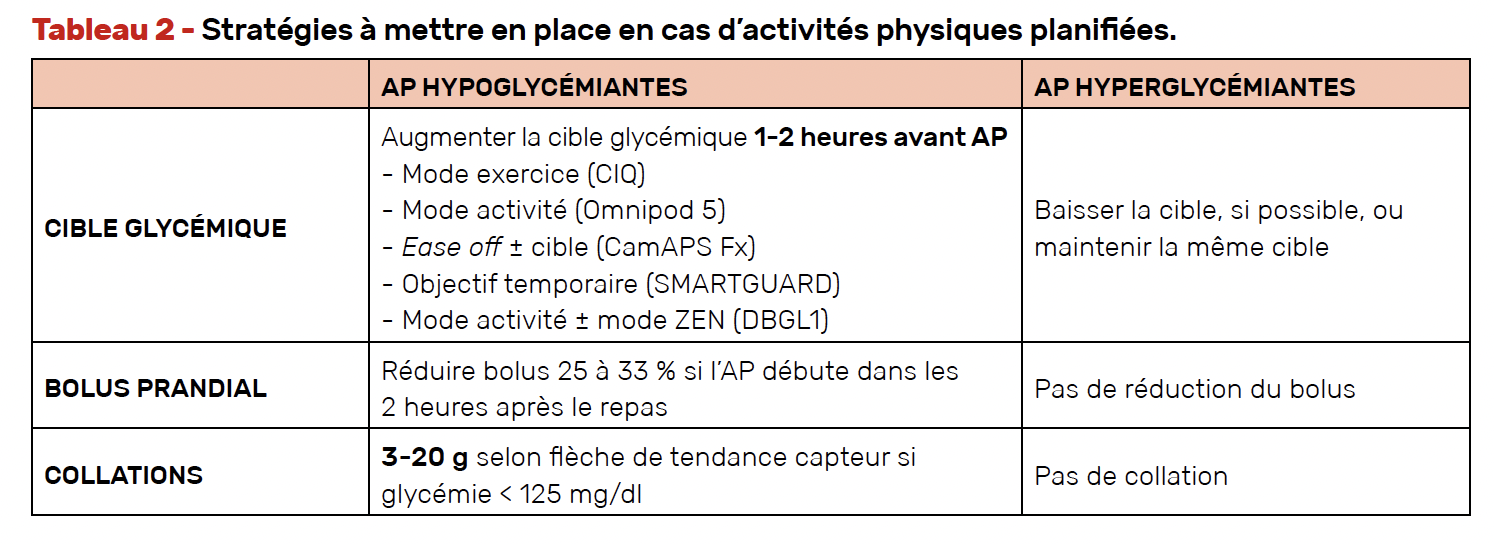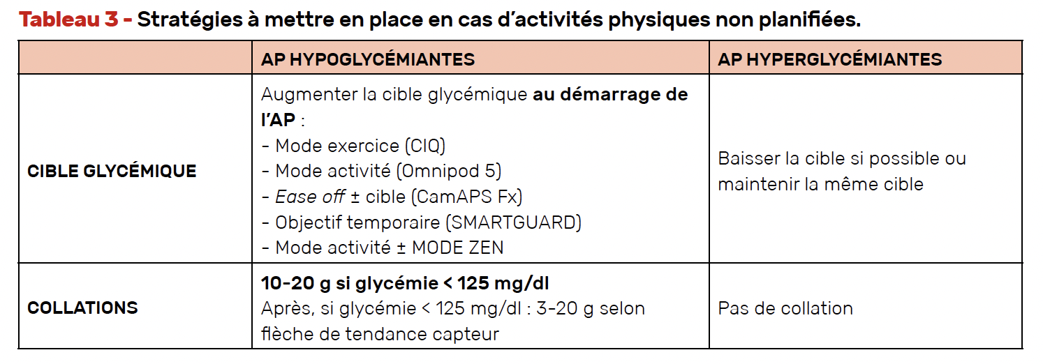 Si activité physique hypoglycémiante (Tab. 2 et 3)